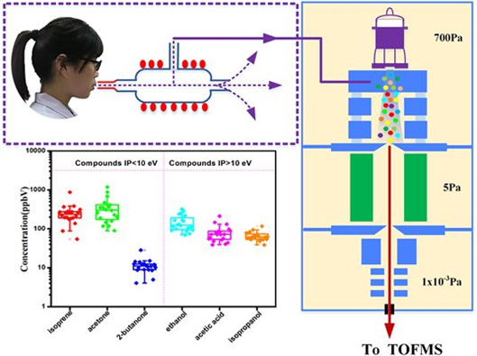 呼出气体检测具有非侵入性、无损伤、取样方便、可连续采样等优势,是分析化学和医学领域的新课题,仍需探索更多更新的分析仪器和分析方法。hppi-tofms应用于人体呼出气分析,简单、快速、无需任何前处理,有望成为一种高通量的疾病筛查工具,并可用于临床上大数据样本分析,而且低成本、高通量、大样本数据的积累有利于发现新的疾病生物标志物。