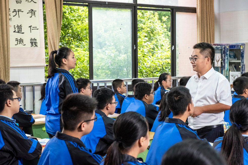 正高级教师、成都市学科带头人、优秀教师文传福给学生上课