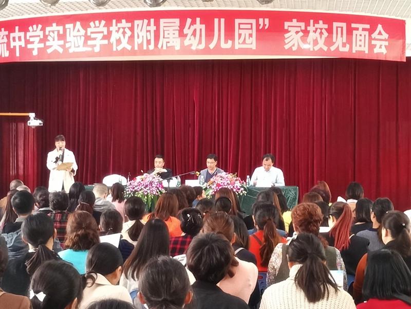 2017年11月3日下午,双流中学实验学校附属幼儿园首次家校见面会在幼儿园艺术大厅圆满落幕。双流中学实验学校附属幼儿园行政园长胡海涛(原美语幼儿园行政园长)、双中实验附属小学校长谢强、双中实验校招生办主任田志明出席并和家长们做了坦诚、亲切的交流。会议由附属幼儿园业务园长(原美语幼儿园业务园长)周娟主持。