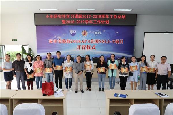 在上学年完成了第一期开题评审、中期评审和结题评审工作的背景下,为精准、及时加强课题组对各二级子课题的研究指导工作,集中精力撰写《初中阶段小组研究性学习课题的开发与实施策略》书稿,进一步研究课题的评价策略,落实常规管理。课题组特于2018年9月17日第二节课在学校学术厅召开2017-2018学年工作总结暨2018-2019学年工作计划研讨会。研讨会对上期工作进行了规范总结,有关老师也对“如何撰写结题成果报告”“如何进行过程资料收集与整理”作了分享交流,同时,也对“第二期开题评审会”相关工作作出部署,并为上期优秀结题课题表彰颁奖。