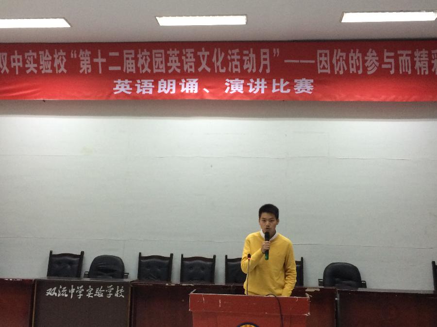 第12周,第十二届英语活动月之英语演讲比赛在学术演讲厅举行,七八九年级的同学们陆续登台,流利的英语充盈着饱满的感情,或深情,或慷慨,或活泼,或严肃。同学们站上舞台,向评委老师和同学们诉说着自己的梦想。选手们各显神通,每个人都展现出他们最出色的一面,他们以其清晰的发音、自然的表达、优美的语言,娴熟的口语能力和自信的微笑, 展现出他们对于英语学习的热爱和执着,同时也展现出了他们昔日的努力和对未来的憧憬。