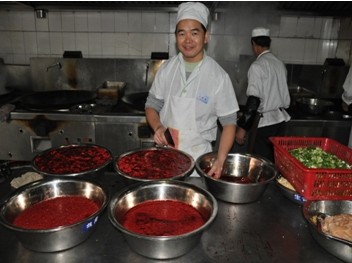 食堂全体员工始终围绕目标、任务明确、牢记承诺,严格按照省级示范性标准化学生食堂的标准要求扎实地搞好食堂各项基础工作,以鲜明的态度向全校师生发出积极号召,并且以种类齐全、香气扑鼻的饭菜来彰显我们“以人为本”的文化理念,切实、有效地作好了全校师生的后勤保障工作,让学校教师专心于教学,让学校学生专心于学习,也让学生家长们更加放心和满意。