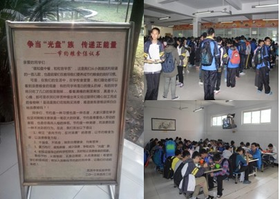 提倡文明进餐,积极培养和引导学生良好的就餐习惯。良好的就餐习惯从学生走近餐厅开始,无论学生是从操场刚下体育课,还是从教室下课走来,进餐厅前做到快、静、齐是良好习惯的第一步。积极引导学生从进入餐厅就要做到:心中想着他人,