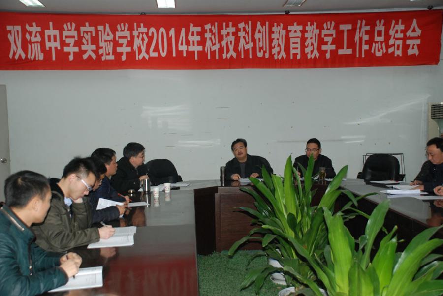 2014年12月25日,双流中学实验学校年度科技科创特色教育工作总结会在三会议室召开,高校长、张校长、周主任及全体科创班部分任课教师、科技辅导员30余人参加了会议。