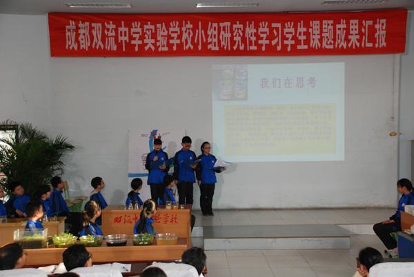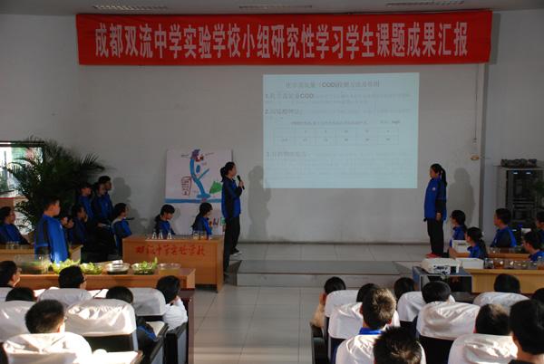 2015年4月15日下午, 2017届科创班小组性研究课题《关注环境 保护白河》之《城市河道污染和治理措施研究》的阶段性研究成果汇报在我校学术演讲厅举行,七年级科创班学生、部分数学班学生代表、部分家长代表、双流县部分小学生代表聆听了汇报。学校高校长、张校长、周主任、文主任等十多位评委出席了汇报现场,并给予了高度的评价。成都电视台进行了专题拍摄。
