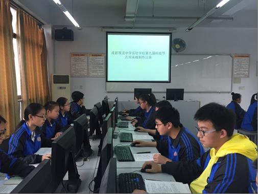 成都双流中学实验学校第九届科技节几何画板制作比赛于4月19日(星期二)下午第四节课在四楼微机室如期举行,八年级共有64名学生参加比赛。