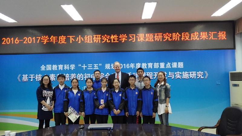 7.14李江洪、金晶 7.15张欣蕊、刘佳。来自圣乔治中学的校长russell一行在我校张润林校长的陪同下亲临了汇报现场,观摩并指导了我们的课题汇报。